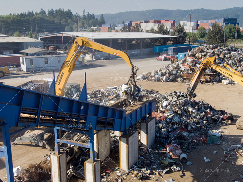 彩鋼瓦破碎機(jī)是河南萬邦機(jī)械金屬粉碎機(jī)系列中用于實(shí)現(xiàn)輕薄金屬破碎的一種設(shè)備,在設(shè)備選型上可考慮彩鋼瓦粉碎機(jī)配套彩鋼瓦撕碎機(jī)進(jìn)行一體化生產(chǎn)線搭建從而實(shí)現(xiàn)自動化彩瓦破碎再生加工。經(jīng)過該機(jī)加工后的廢舊彩鋼瓦可有效降低金屬表層油漆覆蓋面,從而穩(wěn)定廢舊金屬冶金成分降低鋼鐵硫、磷含量,再次使用該機(jī)破碎后的廢舊彩鋼瓦在轉(zhuǎn)運(yùn)具有密度高、占方小運(yùn)輸成本低的優(yōu)勢。在設(shè)備應(yīng)用上該機(jī)被廣泛應(yīng)用于各大廢品回收站,用來對回收后的彩鋼瓦、薄鐵皮、廢鐵屑、易拉罐、油漆桶等進(jìn)行破碎加工。在設(shè)備選型上河南萬邦機(jī)械可提供800型-3000型彩鋼瓦破碎設(shè)備可供用戶選擇,在處理量上可實(shí)現(xiàn)800-28000kg/h。