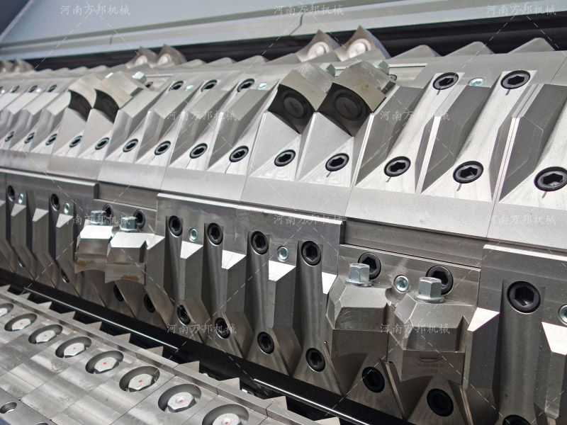 4、刀架優(yōu)化設(shè)計,刀架螺旋分布,可分散碎料時受力度,減輕碎料時沖擊力,使得每刀的破碎剪切力更大。